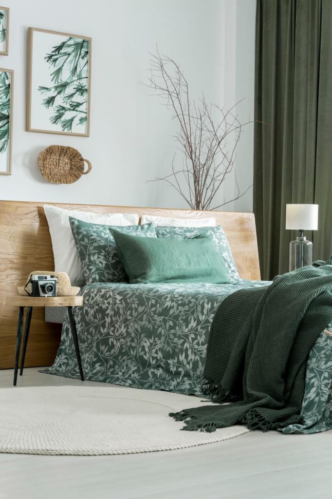 Sage green is soft, earthy, and incredibly versatile. Pair it with blush pink bedding to create a soothing and romantic atmosphere. This combination works beautifully in both modern and farmhouse-inspired spaces.