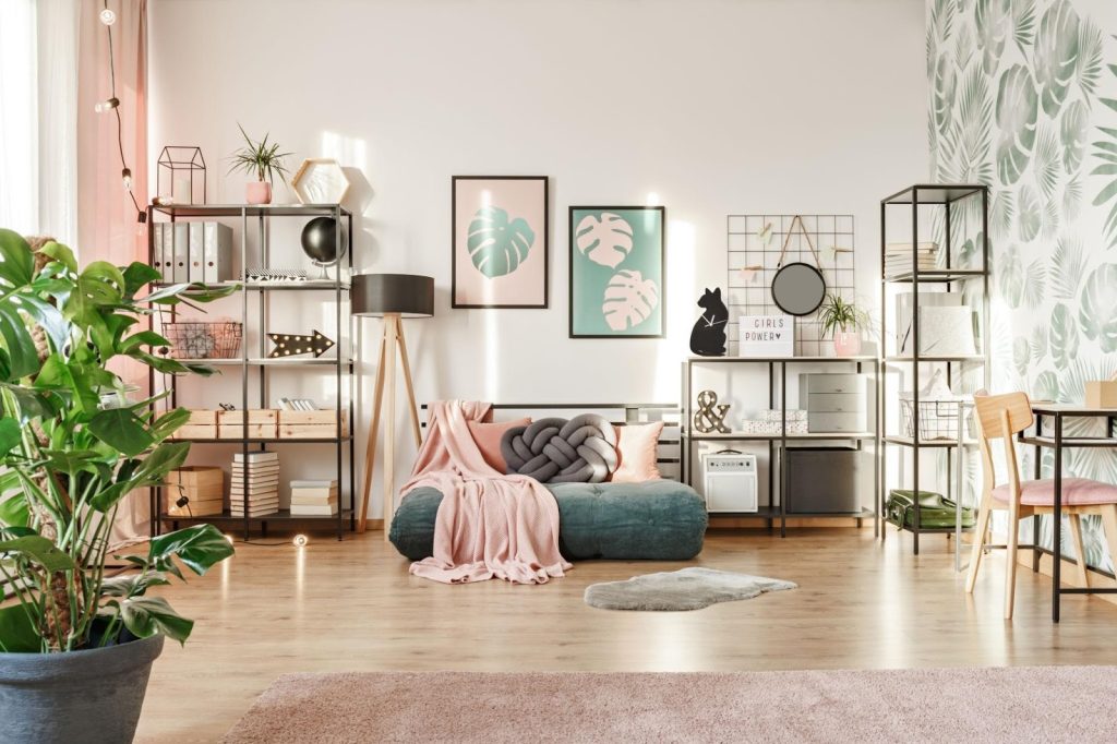 For a dreamy and delicate vibe, combine pastel green walls with baby pink decor. This works especially well in smaller rooms.