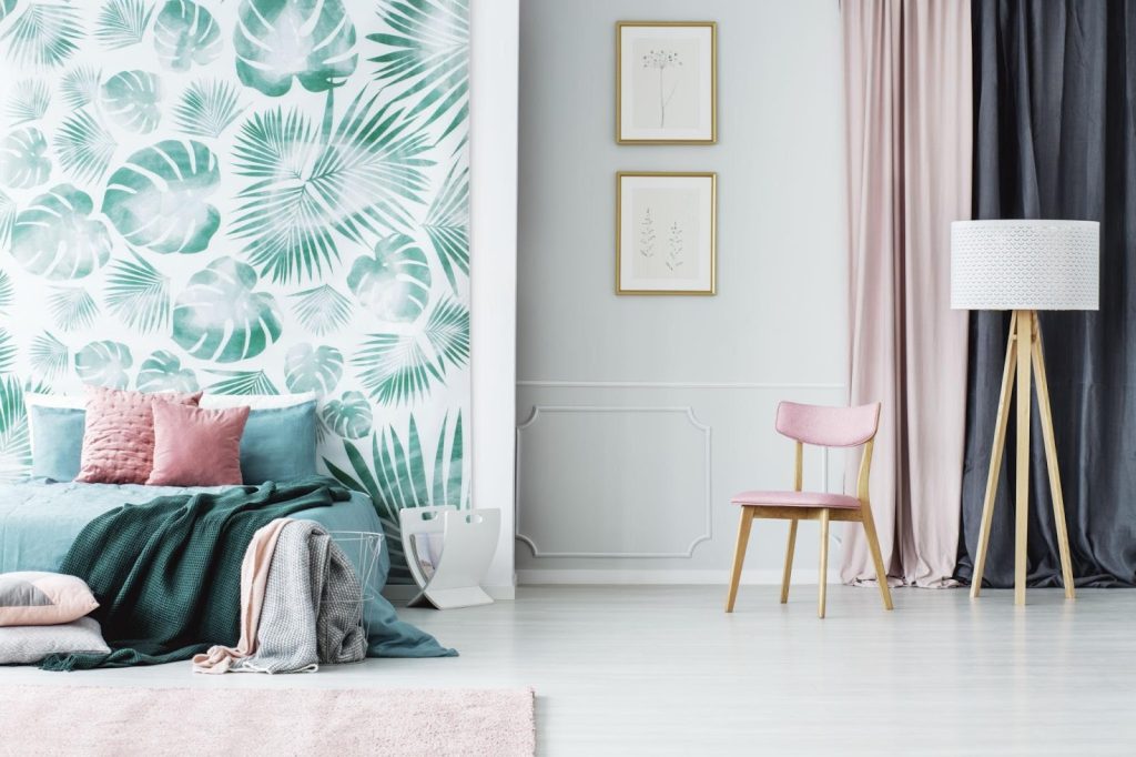 Bring nature indoors by combining leafy green tones with pink floral bedding or wallpaper. This style feels lively and refreshing.