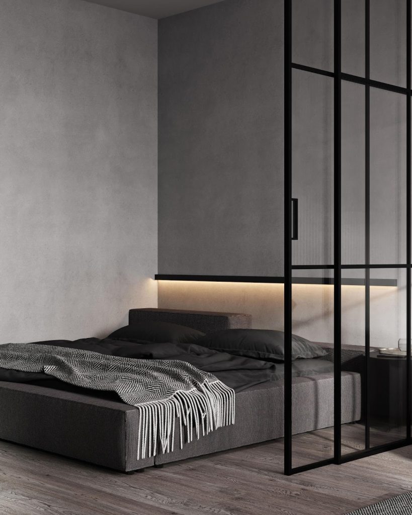 This bold yet refined bedroom grey desgin works especially well in contemporary homes.