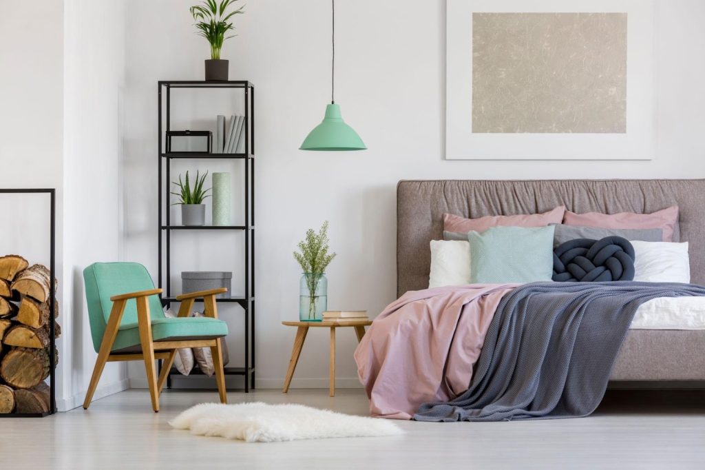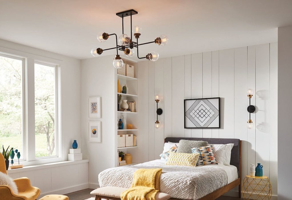 Sputnik-style chandeliers are iconic in Mid-century modern bedroom decor. Their sculptural design adds drama while staying true to vintage roots.