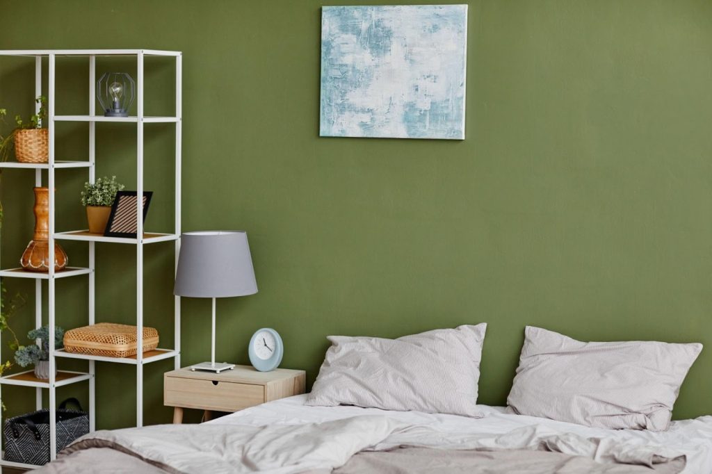 Sage green introduces color without overwhelming the room. Its earthy tone helps Hide Enclosure by blending walls seamlessly with décor.