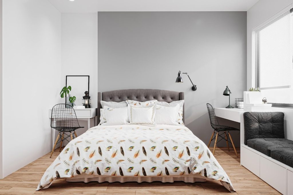 Avoid oversized furniture. Let space breathe — this approach works in both small and large bedrooms.